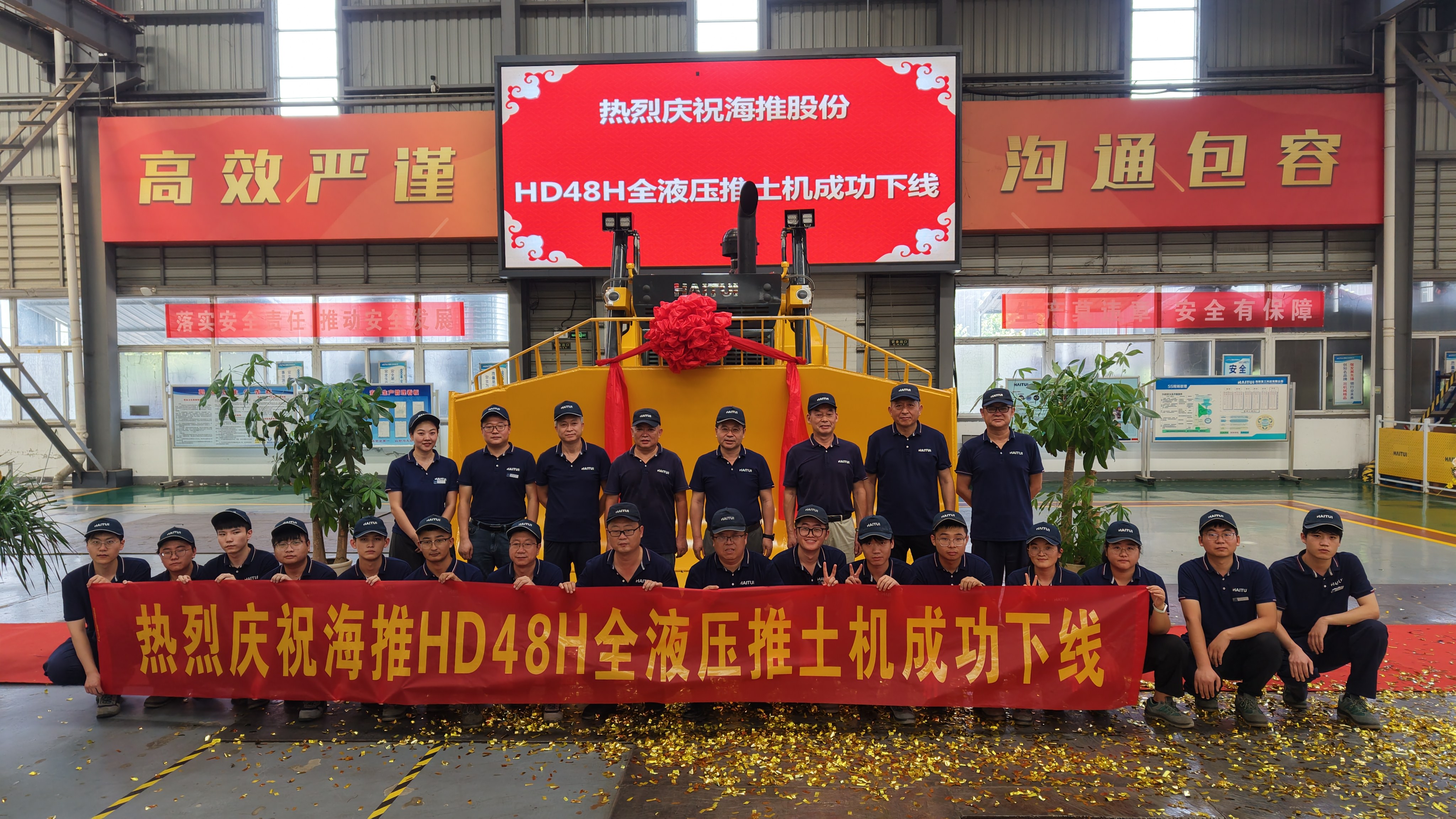 2025年8月28日上午10時(shí)18分,濟(jì)寧海推重工機(jī)械股份有限公司總裝車間內(nèi)氣氛熱烈,公司自主研發(fā)的HD48H全液壓推土機(jī)下線儀式在此隆重舉行。公司董事長、總經(jīng)理薛勇先生,攜公司管理層李建國、楊杰、張士杰、阮久周、楊海東、劉超、葛芳等各位領(lǐng)導(dǎo),以及研究院、營銷部、制造部、采購部、...